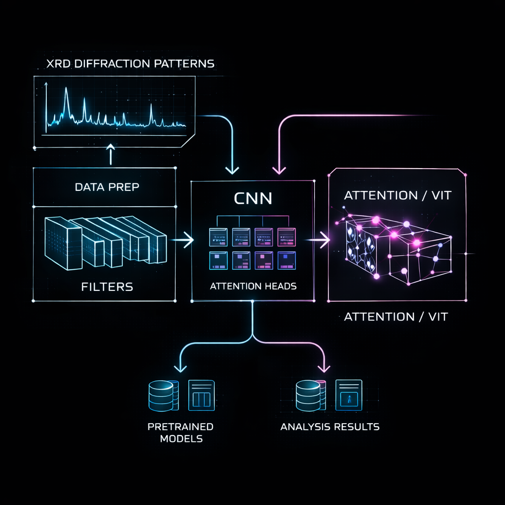 This repository provides an end-to-end workflow for classifying crystal structures and phases from X-ray diffraction patterns using deep-learning models, including CNN-based, attention-based, and hybrid architectures. It supports quick validation of pretrained models as well as full training or fine-tuning for single-phase and bi-phase scenarios, with pathways for standard datasets and custom SimXRD-style data preparation. The workflow is designed for scalable execution on HPC environments, with job scripts and evaluation outputs to interpret model performance.