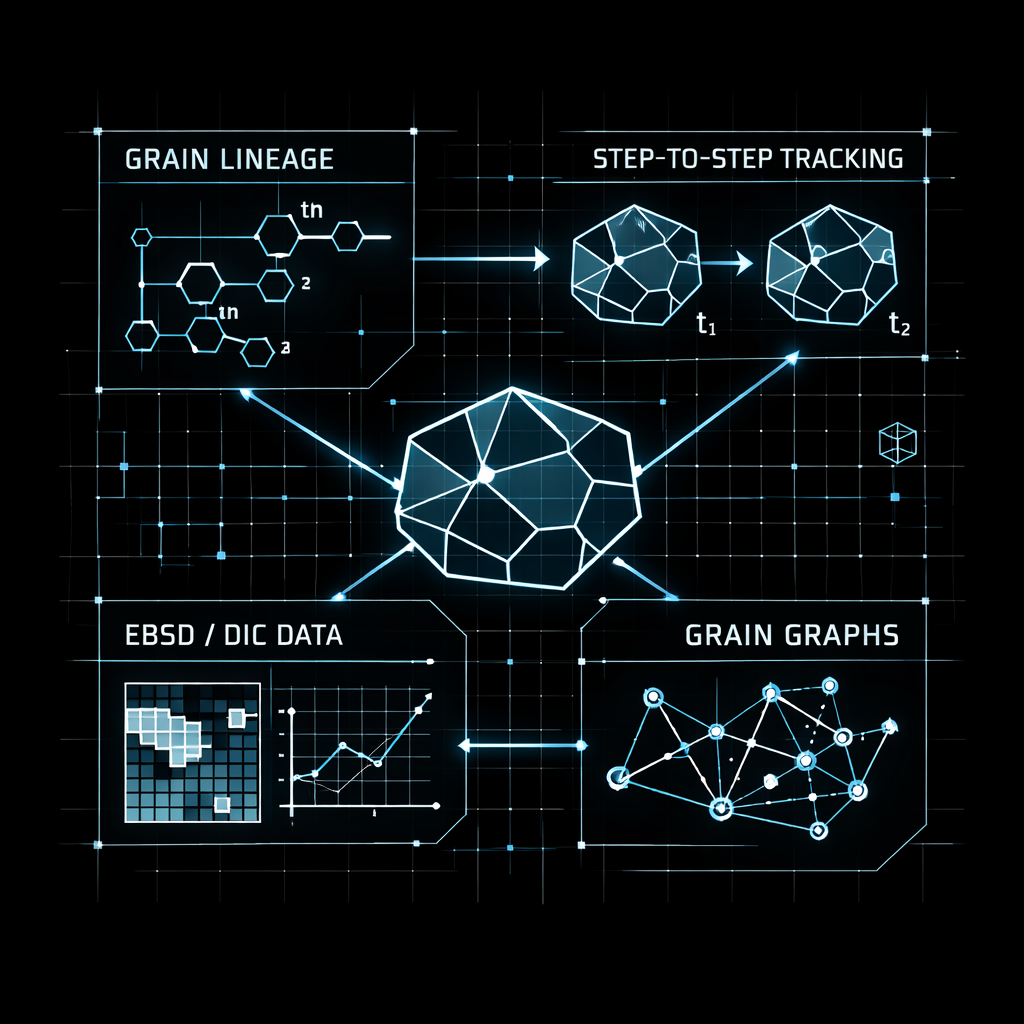 This repository focuses on tracking microstructural grains across deformation or processing steps using EBSD/DIC data. It consolidates per-step grain property measurements, constructs directed lineage graphs that link grains between steps, and supports visualisation and modelling workflows. The included datasets and notebooks cover preprocessing, regression analysis, and step-to-step tracking results for grain evolution studies.